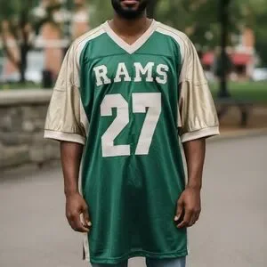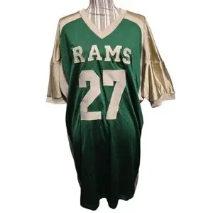 Support your team with this Rams jersey in vibrant green and gold. Ideal for fans and casual outings.