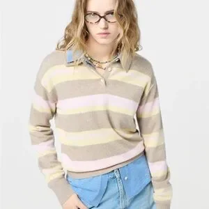 Guest in Residence COLLEGIATE STRIPE POLO in Taupe Combo