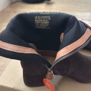 Gentle Souls chocolate brown suede Elbert bootie. Suede/textile upper and lining. Man made outsole. Water resistant. NWT. Never worn. Has a scuff/scratch but was like that when I got them. Beautiful suede booties in the color of the season!