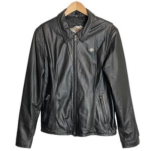 Harley-Davidson Soft Black Leather Moto Embroidered Logo Riding Zippered Jacket