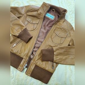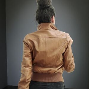 Women's Genuine Leather English Boutique English Tan Bomber Jacket