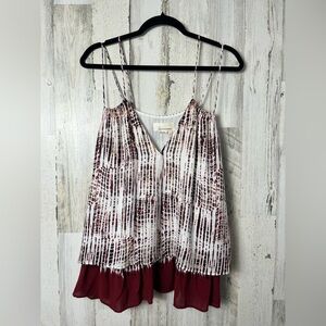 Anthropologie Olivia Burgundy and White Layered Cami NWT Large