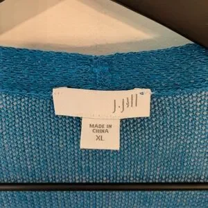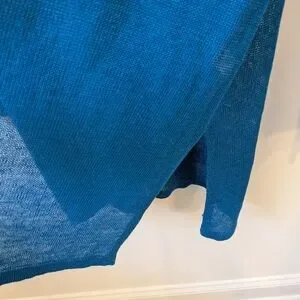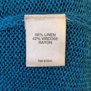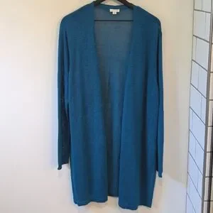 J. Jill Turquoise Linen Blend Long Line Open Cardigan Sweater Coastal Beach