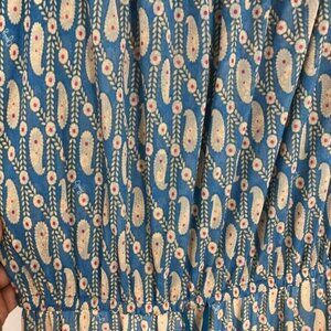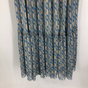 Juicy Couture Blue Beige multicolor Tiered Chiffon Paisley Maxi Dress size L