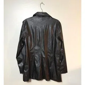 NWT Vtg Jennifer J Womens Black Faux Leather Button-Up Jacket 2X