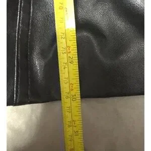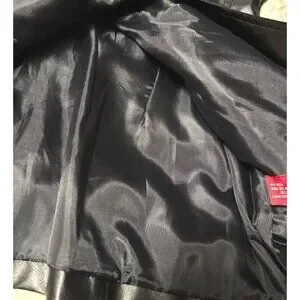 This jacket combines style and practicality with its elegant black faux leather exterior and comfortable polyester lining. Designed with a button-up front and tailored fit, it’s suitable for colder seasons while maintaining a fashionable look.