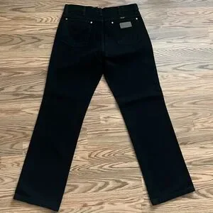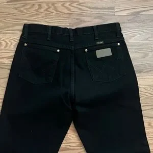 This is a pair of men’s black Wrangler jeans size 33 X 30.