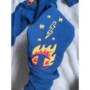 Champion Reverse Weave Hoodie Sweatshirt Living in Blue Skateboard Flames Sz L. Condition is New with tags.