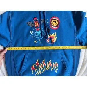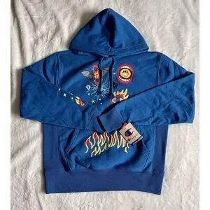 Champion Hoodie Men Sz L Sweatshirt Living in Blue Skateboard Flames NWT