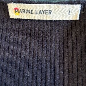 Marine Layer Lexi Rib Sweater Maxi Long Sleeve Dress Black Green Trim Large