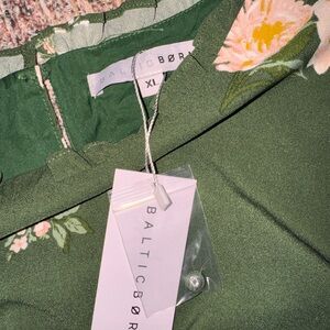 Chic olive dress with delicate floral accents. Ideal for versatile wear.