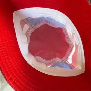 Add a bold touch to your look with this vibrant red bucket hat featuring a striking flag design. Perfect for any casual outing.