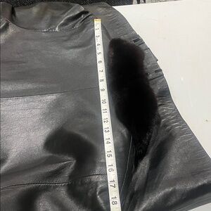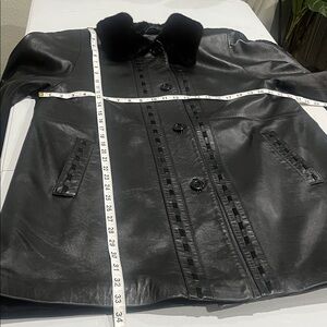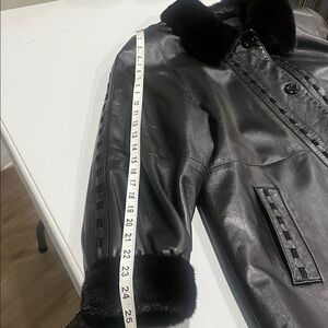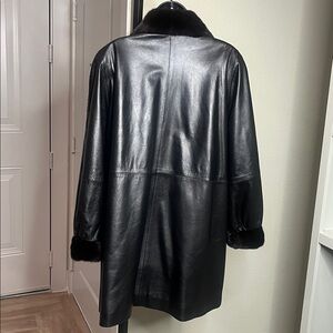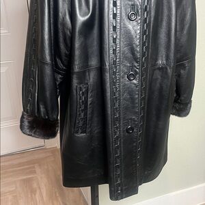 Elegant black lamb leather coat featuring a luxurious ranch mink collar & cuff. Perfect for a sophisticated look.Coat in excellent condition.