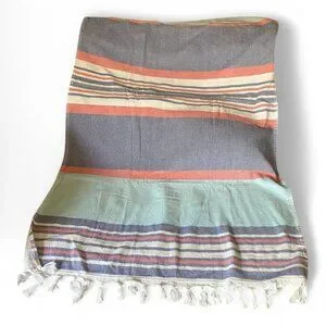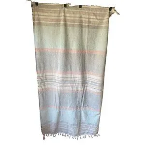 Preppy pastel striped white fringe 32x62" cotton blend beach towel