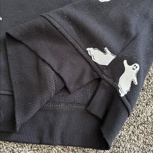 Stylish black sweater featuring a playful white ghost print. Perfect for a casual look.