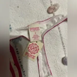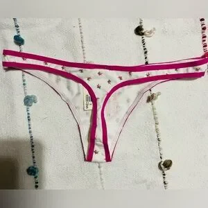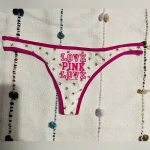 PINK Vintage Victoria's Secret Pink and White Low-Rise Thong