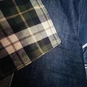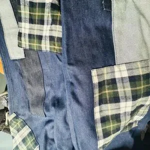 Top man denim jumpsuit with plaid flannel patchwork.