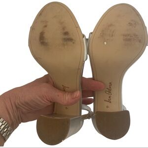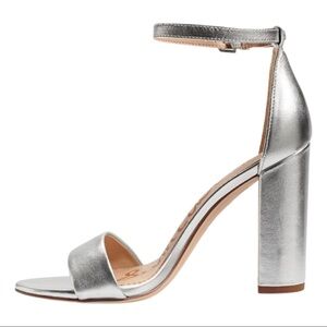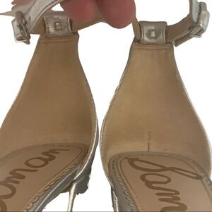SAM EDELMAN Yaro Block Heel 4” Leather Sandal Silver Shimmer Metallic Size 8.5