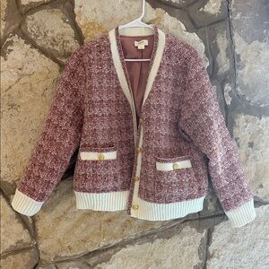 LIKE NEW Anthropologie Maeve tweed lurex coatigan size large