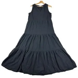 Keywords: Tommy Bahama, maxi dress, black dress, linen dress, sleeveless dress, tiered dress, womens dress, resort wear, casual dress, summer dress, beach dress, boho dress, midi dress, rayon blend