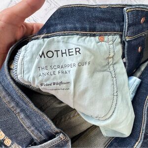 Gently used MOTHER Denim Scrapper Cuff Ankle Fray Unstitched blue Jeans size 25 .