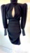 This elegant black dress features a high-neck design with dramatic puff sleeves and a chic cut-out detail. Perfect for any sophisticated occasion.