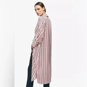 We captured every detail from our favorite menswear button downs and turned them into dress form. Equal parts polished and effortless, this silk dress boasts a playful stripe pattern, breast pocket, and an oversized shape for easy, sophisticated styling.