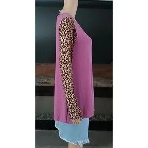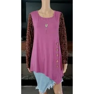NEW WITH TAG WOMEN'S SIZE LARGE - VIISHOW Fashion New Power Women's Purple Leopard sleeves Tunic Top & Necklace NECKLACE IS INCLUDED!! sku-7