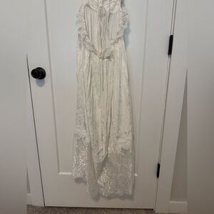 This elegant white lace dress is perfect for any special occasion. Its delicate design and classic color make it a timeless addition to your wardrobe.