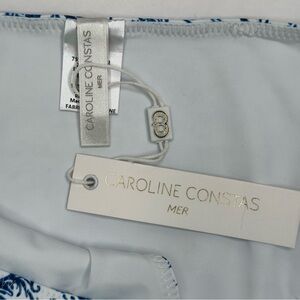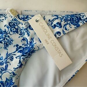 NWT CAROLINE CONSTAS Blue Toile Evie Bandeau Bikini Top Mykela Bikini Bottom LG