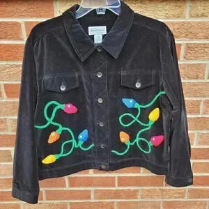 Vintage Bellepointe Christmas Lights Blazer Jacket Women's Size Medium