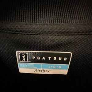 The PGA Tour Men's Large Solid Black Long Sleeve Polyester Polo is a classic and stylish activewear or casual shirt perfect for various occasions. Made from breathable polyester fabric, this polo features a collared neckline with a button closure, contrast collar, and rubber buttons. Its regular fit and long sleeves make it suitable for all seasons and activities like walking, golf, or school. With its sleek black color and PGA TOUR branding, this polo combines comfort and style effortlessly, making it a versatile addition to any man's wardrobe.