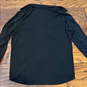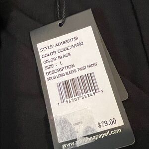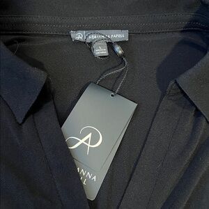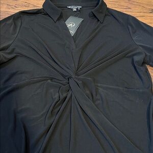 NWT. Adrianna Papell twist front black blouse. Collar and cuffed sleeves. Lightweight with stretch.