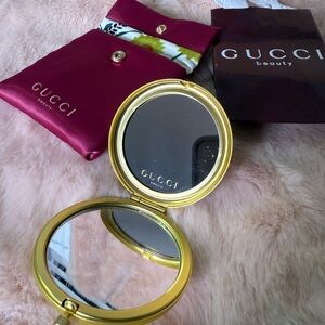 LAST ONE! Brand new Floral compact with a vibrant design. Comes with a burgundy pouch. Elegant and stylish. Perfect for pockets or small purses.