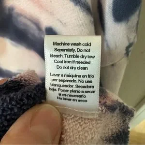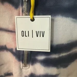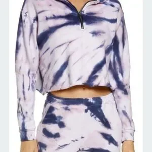 NWT OLI VIV Corey Tie Dye Quarter Zip Crop Hoodie Mauve Navy Cotton Loungewear L