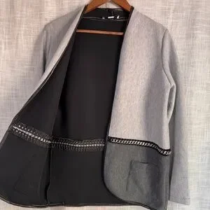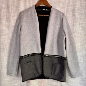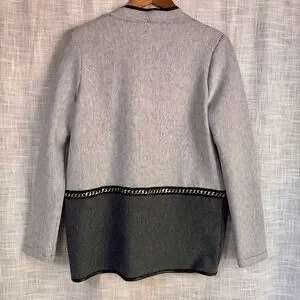 Joseph Ribkoff Gray Pockets Two-Tone Sweater Blazer Chain Detail Jacket Size M