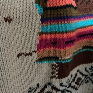 Catcher large cardigan sweater, Native American, Indian bison, buffalo. vintage Stay cozy and stylish with this multicolor graphic knit sweater. Featuring a unique design. Please see photos. This item does have wear and some piling. Still very good condition for vintage piece.