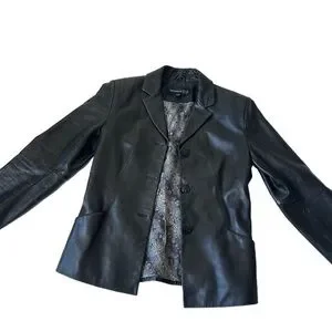 Elevate your style with this sleek black leather jacket from Kenneth Cole. Perfect for any occasion, this jacket offers a timeless look with a modern edge.