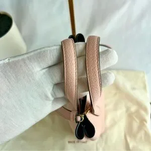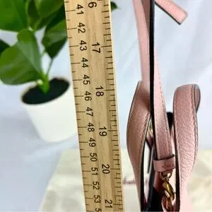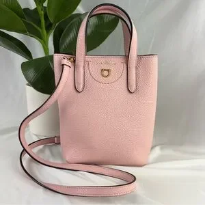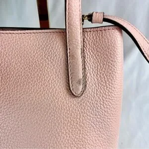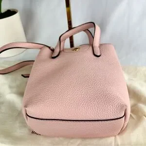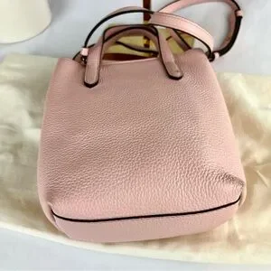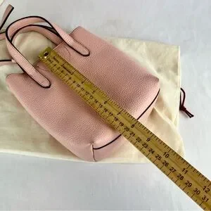 Add a pop of luxury to your collection with this stunning Salvatore Ferragamo Gancini Mini Tote in a soft blush pink pebbled leather. This compact yet functional bag is perfect for everyday wear or special occasions, with the versatility to be carried by the top handles or worn crossbody.