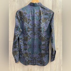 Topman mens blue floral dress shirt! Gently worn condition. No marks, pulls or flaws of any kind. Comes with two extra buttons should you need them. Has tiny pinhole in the label from the original tag. See last photo. 100% Cotton Measurements: 20 inches pit to pit 30 inches neck to bottom front 🌟 Add more items from my closet and save in shipping! 🌟 Fast shipping .. 🌟 Five star seller ..