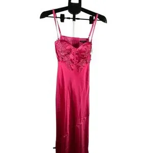 Stunning pink slip dress featuring delicate floral embroidery. Perfect for special occasions.