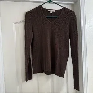 This is a gently Preowned Ann Taylor Factory Chocolate Brown V-Neck Cable Knit Sweater Size Medium. Please make an offer if interested.