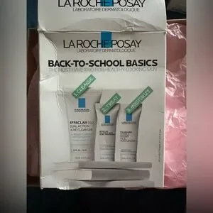 La Roche-Posay skincare trio set. Includes cleanser, treatment, and moisturizer. Perfect for healthy-looking skin.
