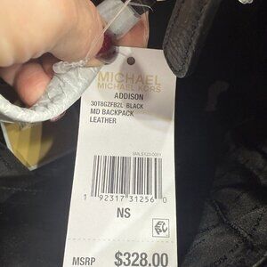 This elegant Michael Kors Addison Medium Backpack in black is crafted from premium leather with gold-tone hardware accents, offering a luxurious yet functional design.