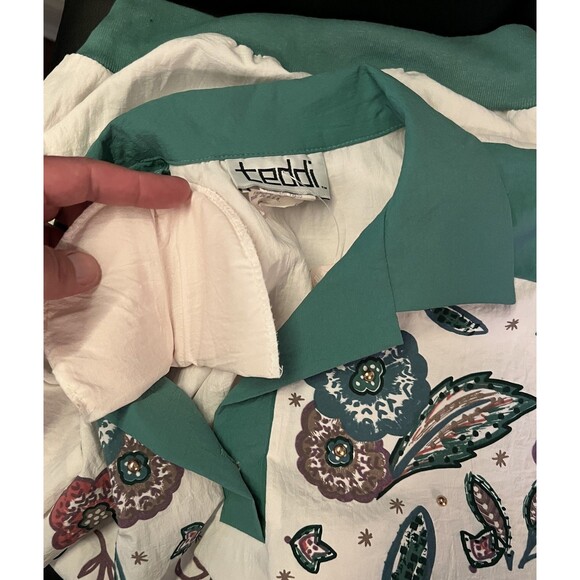 Vintage Teddi Pullover Womens Large White Teal Floral Print Rhapsody NWT 80s USA