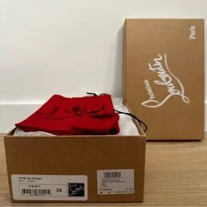 Step out in style with these elegant black patent leather stilettos. Perfect for any occasion, these shoes offer a sleek and sophisticated look. Shoes are pre-loved with a 3.9” stiletto heel. Shoes are authentic and come with box.