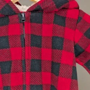 ❤️ 2 for 10 ❤️ Carter's Buffalo Check Red Black Fleece Romper