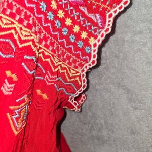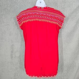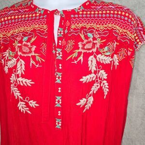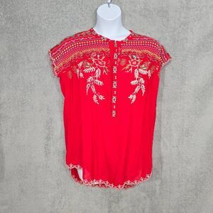 Johnny Was Scarlet Red Lissa Cupra Rayon Floral Embroidered Blouse Medium