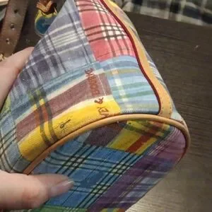 Dooney & Bourke Y2K-ERA 2-fer "Picnic Ants Madness" Plaid Canvas Bag & Wristlet. Very rare i could find 1 bag & 1 wristlet online & not as same set. Bag & wristlet both have blue duck hang tags.