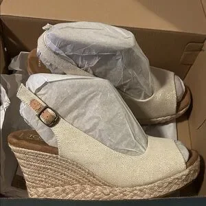 Chic TOMS wedges with a tan finish. Ideal for casual outings.